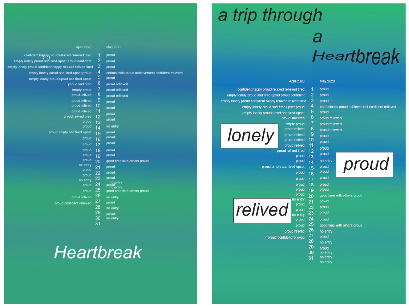 I made the title different because I think it explained better than just “Heartbreak.” I also changed the top keywords to a bar format to display it clearly.