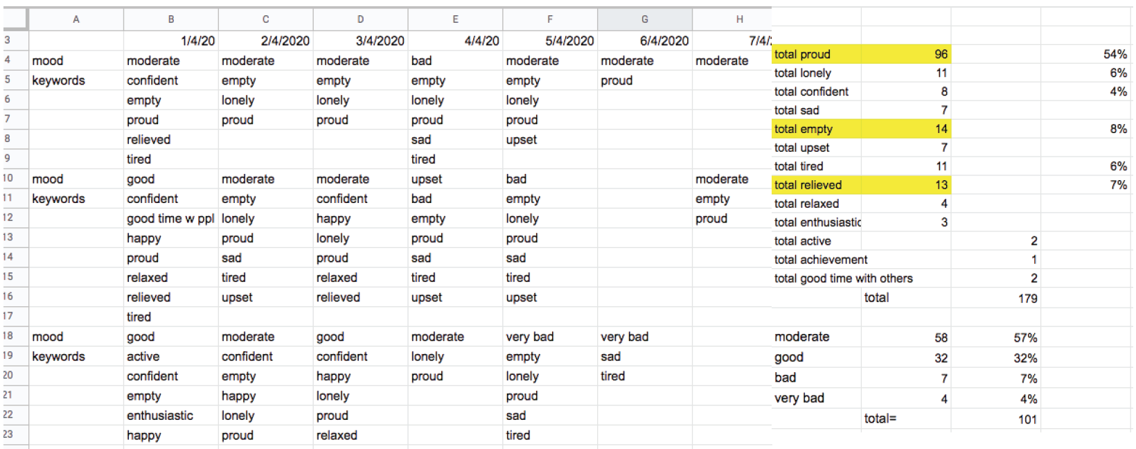 The data categories were as follows: 1- date 2- mood 3- keyword