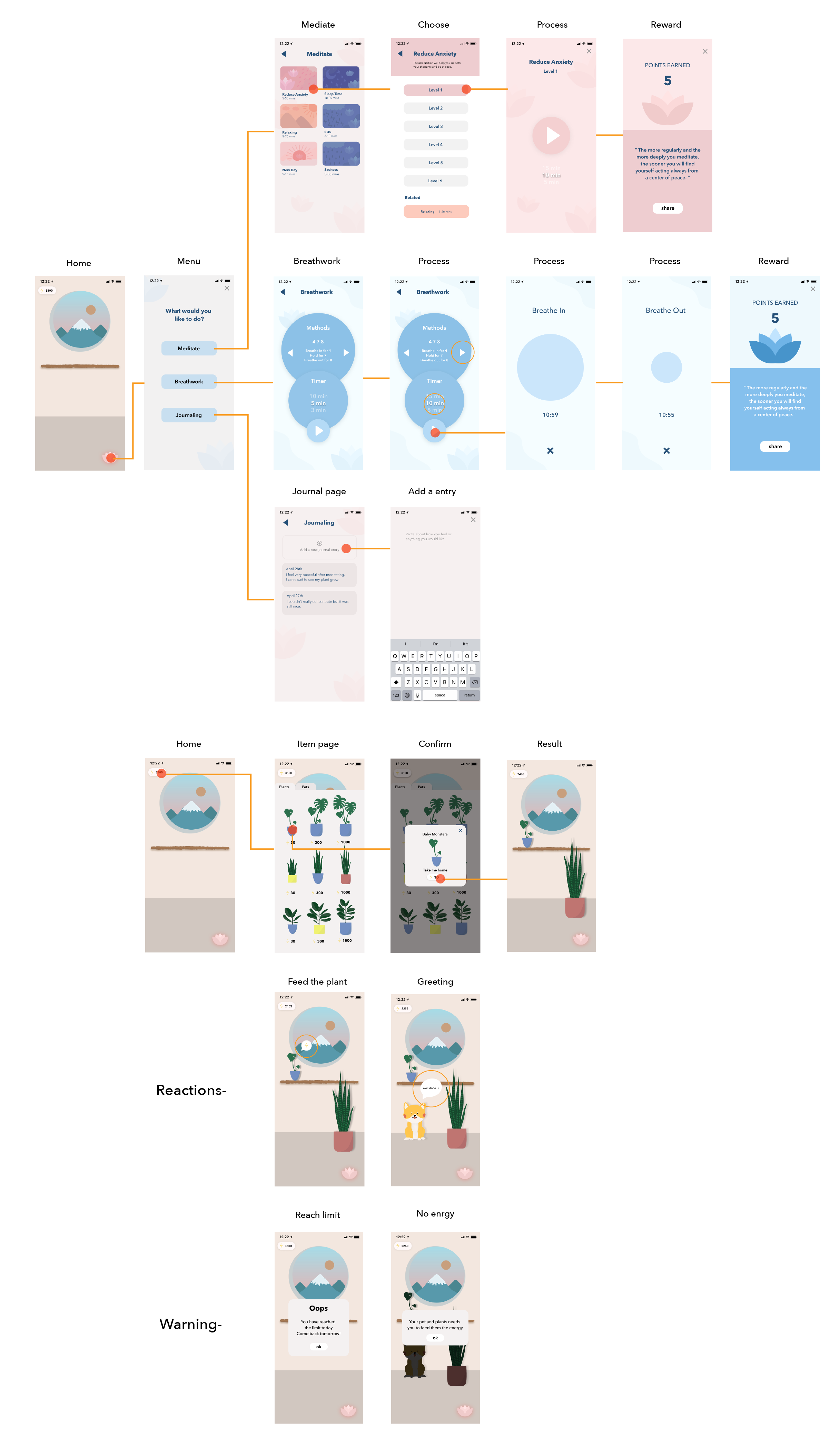 When the user finished the meditation session, they can earn points to decorate their room after each session. The plants they bought will keep growing bigger and the pets will be encouraging the user every time they use the app.