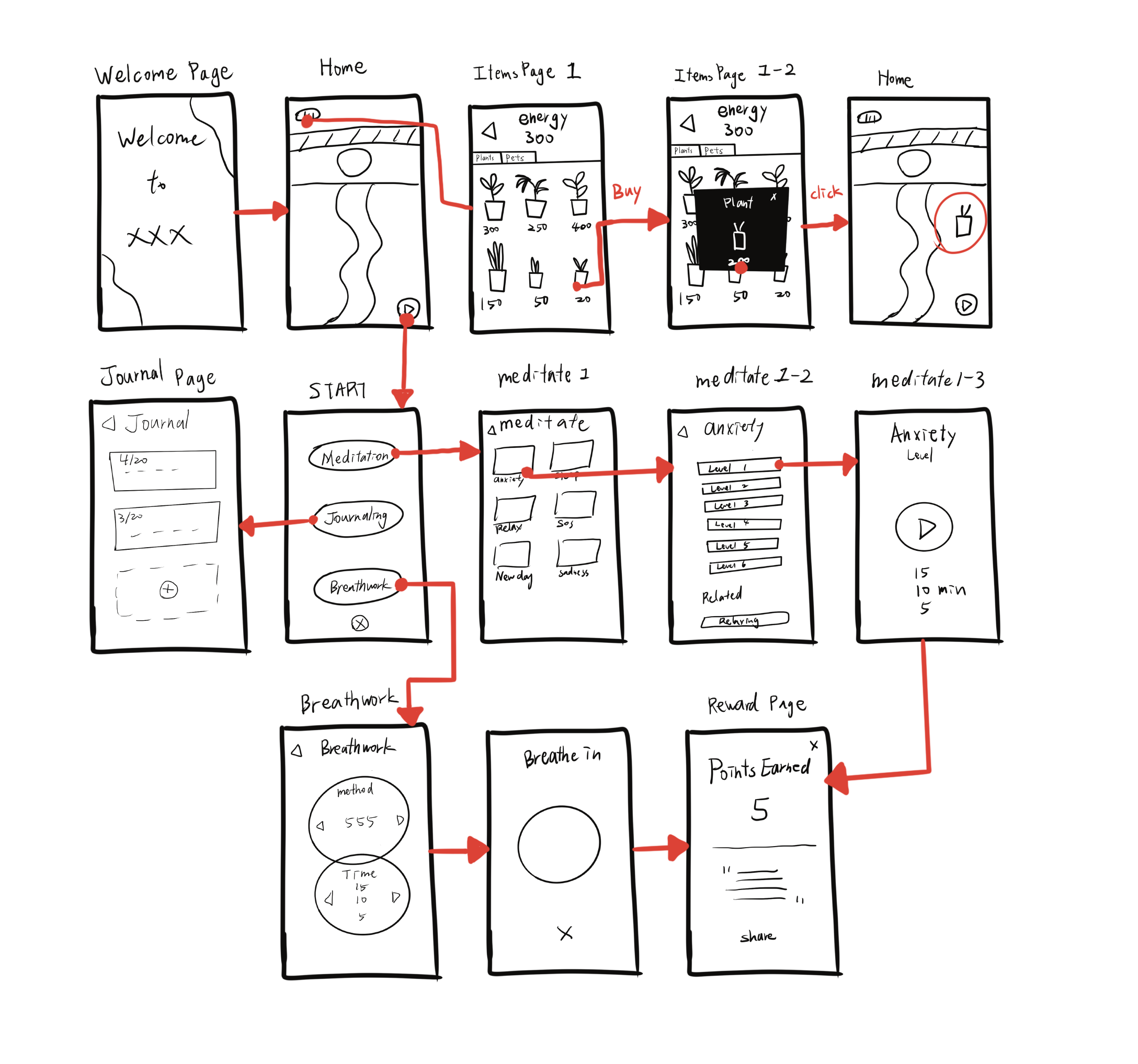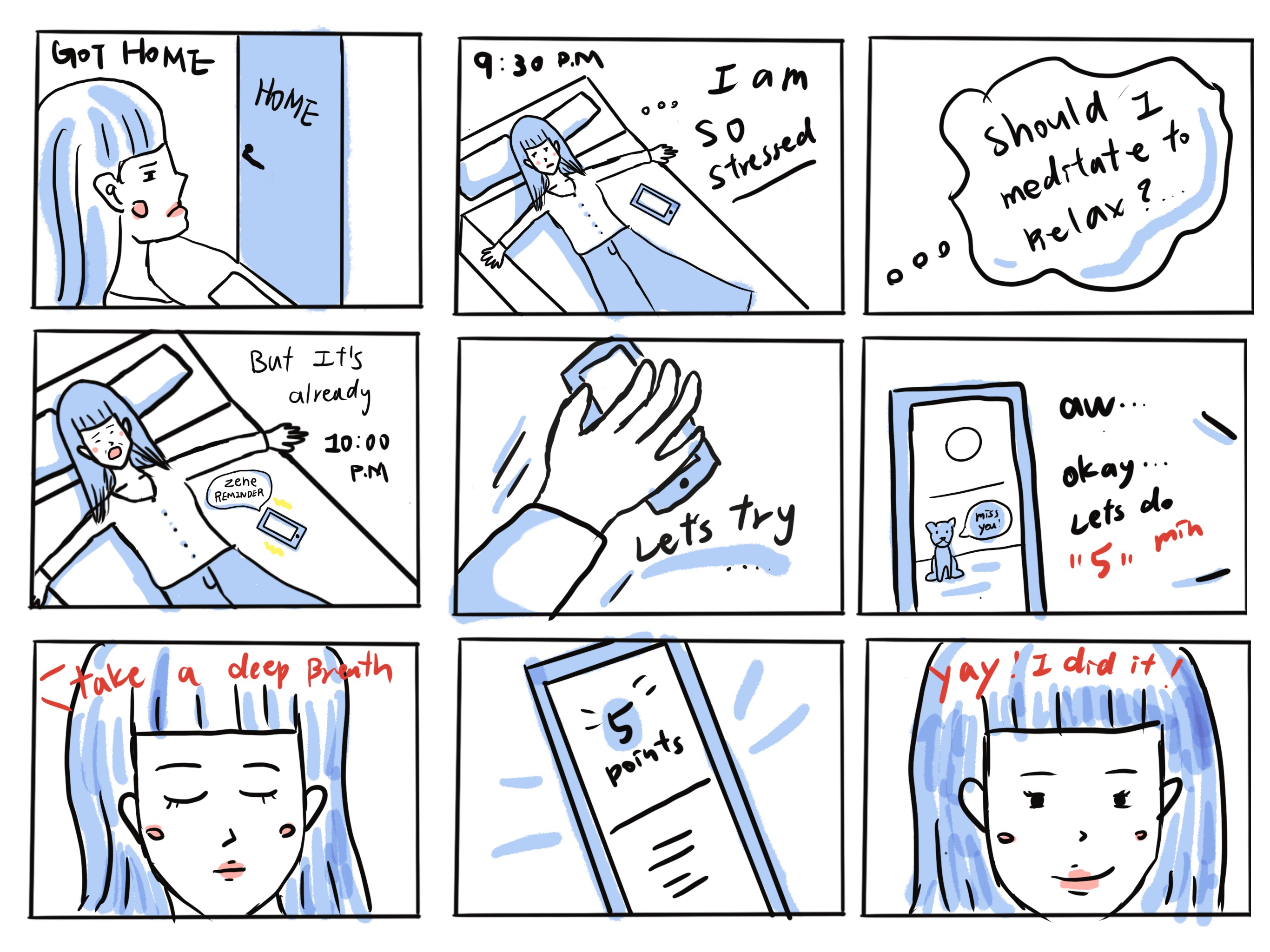 After brainstorming, I came up with this meditation game app “Zene” that will make the mediation experience more interactive and less boring. It has reward systems, nurturing function and short sessions options to keep the users interested, engaged and more willing to try. This also creates another motive for the users to do meditation.