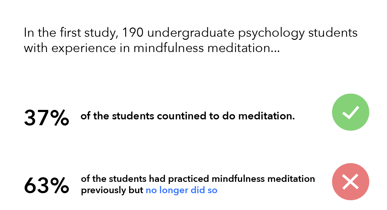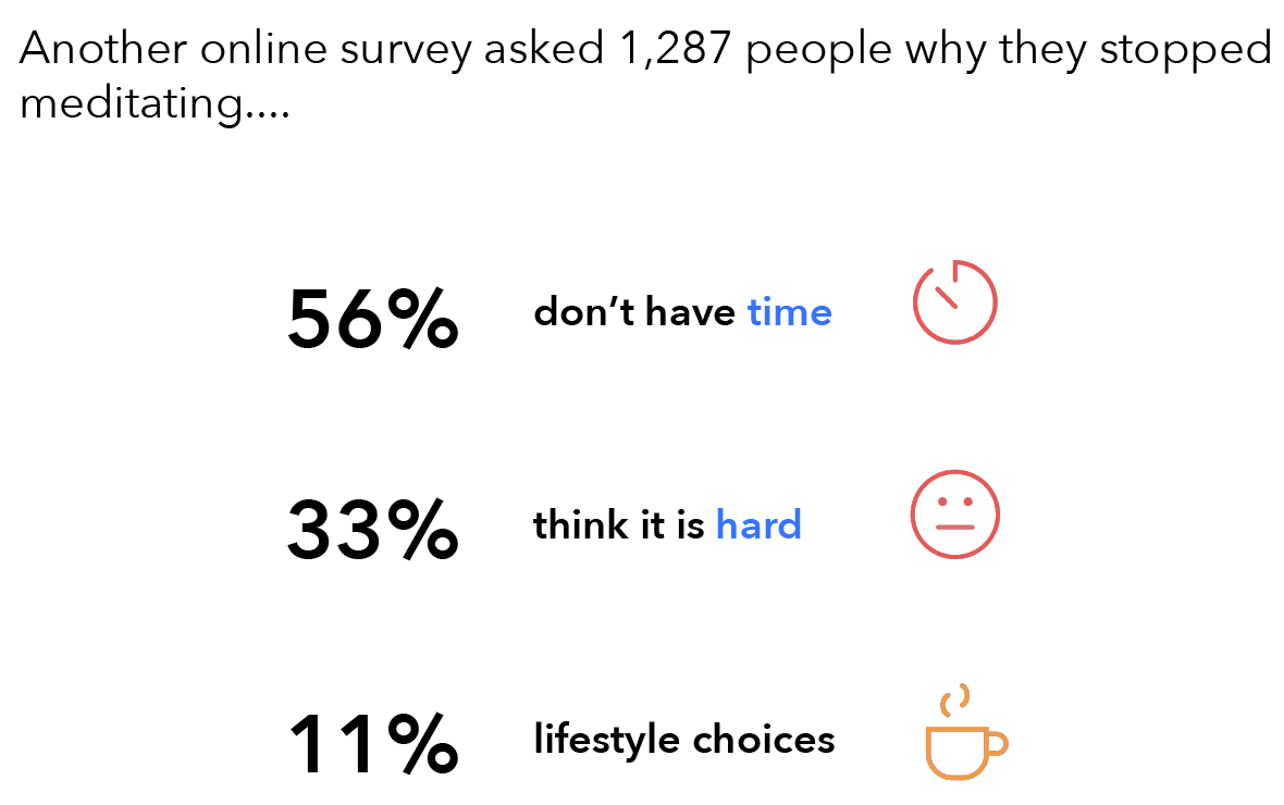 In order to understand the problem, I did some research online. I wanted to find out some numbers on how many people had stopped doing meditation and why.
