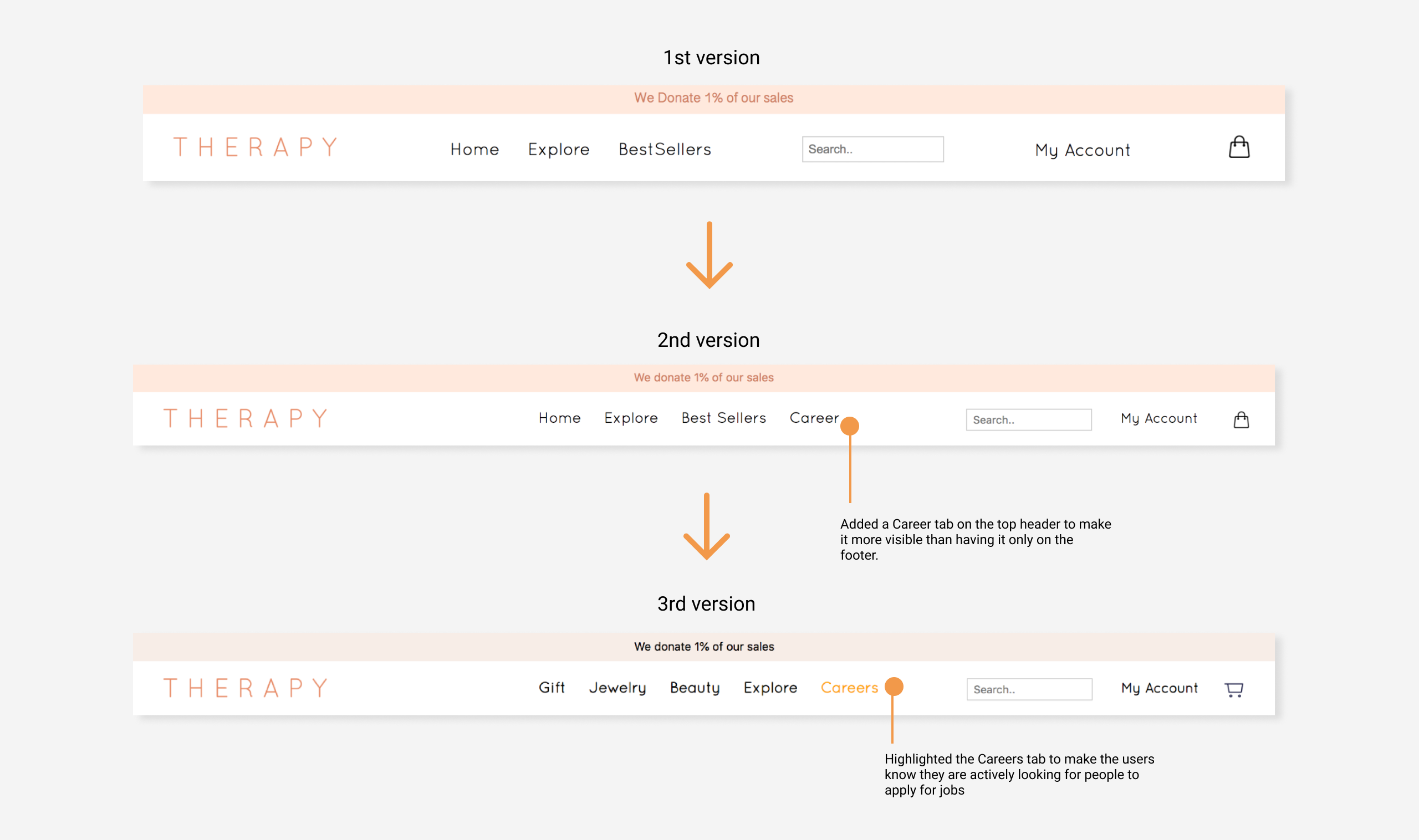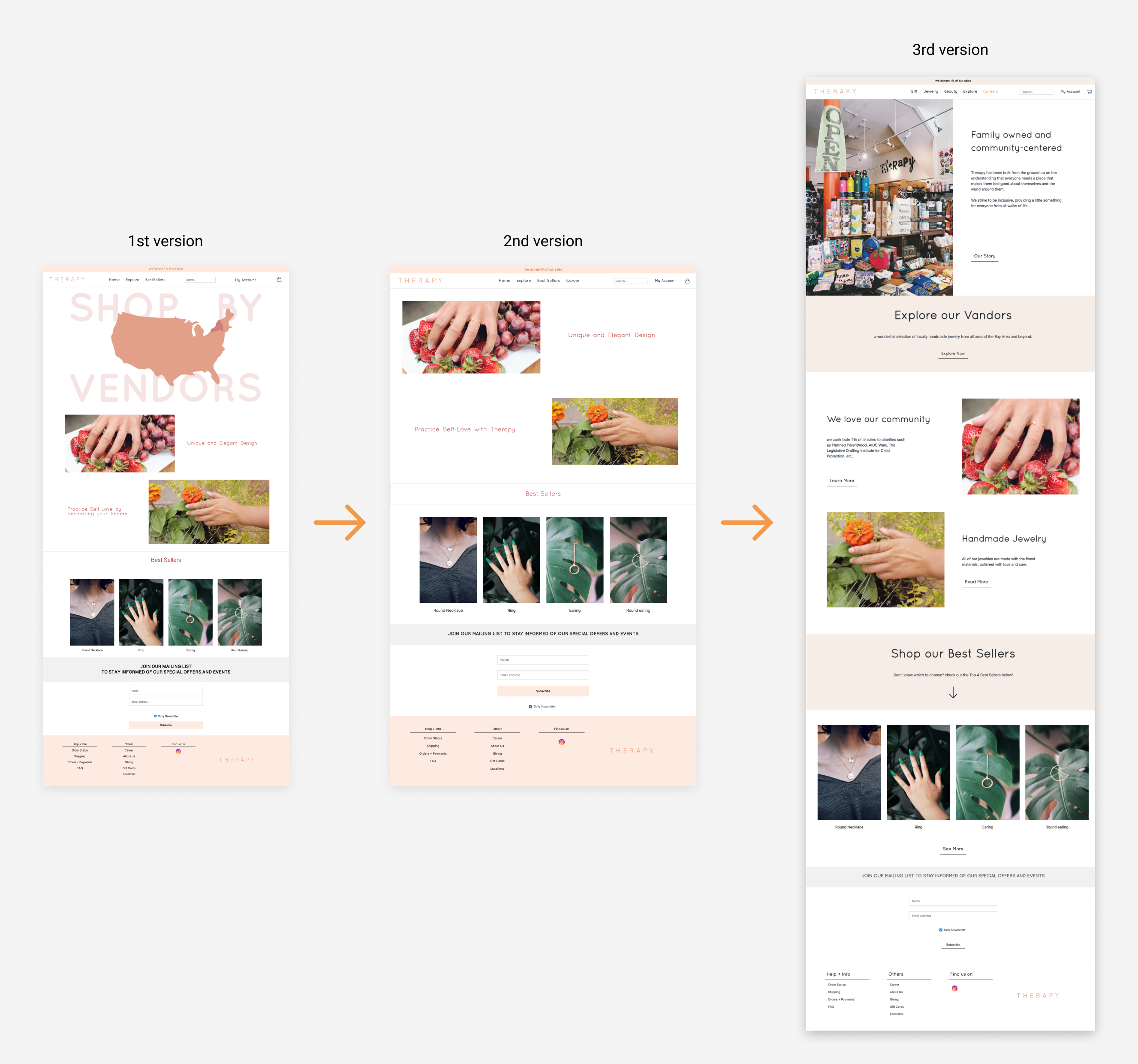 I changed the orange color to a darker and faded tone because the brighter orange takes away too much attention and makes it hard to focus on the rest of the info. I also added a page about the store background on the top because I wanted the user to learn about the store first. I rearranged the layout for the product shots so it would be easier for the user to view.